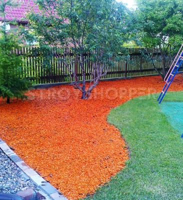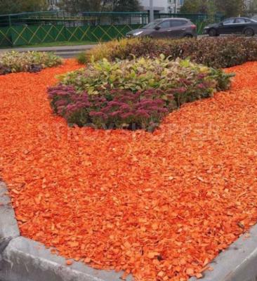 Декоративная щепа регулярно используется в ландшафтном дизайне для декорирования и мульчирования садов и участков. Сама щепа окрашена красителями на натуральной основе, которые не смываются водой и устойчивы к выгоранию на солнце. Сам цвет получается ярким и насыщенным. Средний срок службы декоративной щепы составлет приблизительно 2-3 года. После укладки на землю, со временем нижние слои щепы начинают понемногу перегнивать, улучшая состав почвы, но при этом свои декоративные свойства она сохраняет на протяжении всего срока службы. Сама же основа - это щепки хвойных пород деревьев фракции от 2 до 4 сантиметров. Чтобы добиться максимального мульчирующего эффекта и 100% отсутствия сорняков, рекомендуем вам укладывать коричневую декоративную щепу на подложку из геотекстиля или листвиничного гумуса. Оптимальная толщина укладки составляет 3-4 сантиметра. Купить цветную коричневую щепу можно в мешках объемом 60 литров, цена зависит от количества - чем больше объем, тем ниже цена. 60 литрового мешка при указанной толщине засыпки хватает на 1 квадратный метр территории.